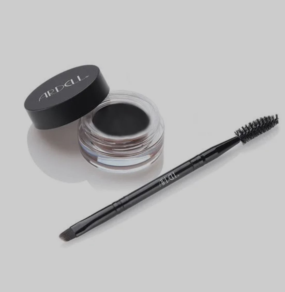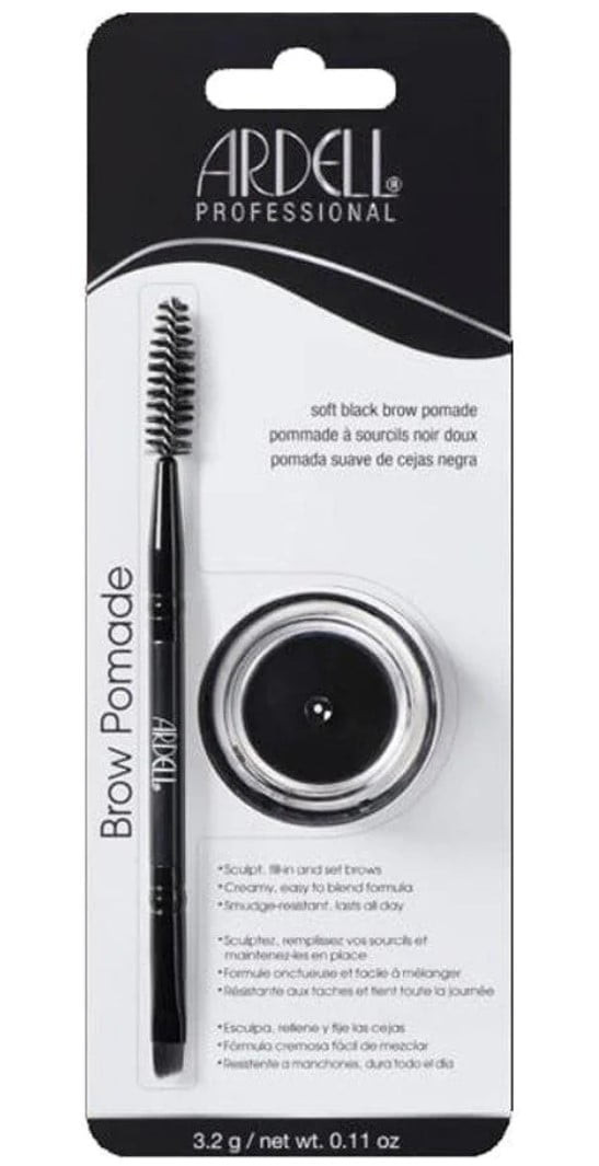 Ardell Pro Brow Pomade sett som inneholder en brynpomade og tosidig børste. Pomaden er plassert i en gjennomsiktig krukke som du enkelt kan ta med i vesken din for touch-ups i løpet av dagen. Dobbelsidig børste med kost er laget for å børste, fylle ut, skulpturere og definere brynene dine.