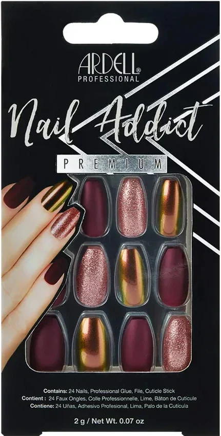 Ardell Nail Addict Premium er kunstige premiumnegler designet av profesjonelle. Neglene har lang holdbarhet og er allerede malte og dekorerte. Basen på neglene er avsmalnende, som gjør at de kan ligge nær neglebåndene for en naturlig look. Den lave vekten gjør neglene komfortable å ha på.