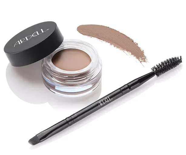 Ardell Pro Brow Pomade sett som inneholder en brynpomade og tosidig børste. Pomaden er plassert i en gjennomsiktig krukke som du enkelt kan ta med i vesken din for touch-ups i løpet av dagen. Dobbelsidig børste med kost er laget for å børste, fylle ut, skulpturere og definere brynene dine.