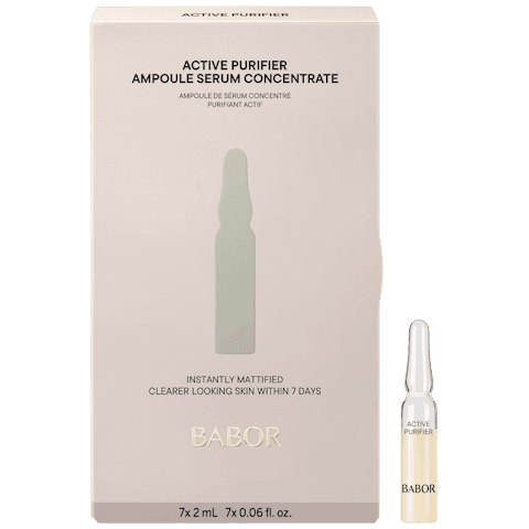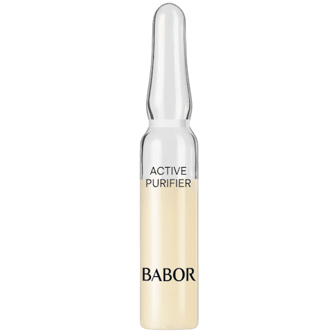 Babor Active Purifier Ampuller reduserer uren hud, tette porer og utbrudd raskt med ingredienser som tea tree-olje, som hemmer bakterier og fremmer hudreparasjon. Gir en klargjørende effekt på urenheter og sorte prikker, med synlig klarere hud på kort tid. Kan brukes i hele ansiktet eller lokalt. Ideell for ungdoms- og hormonell hud.