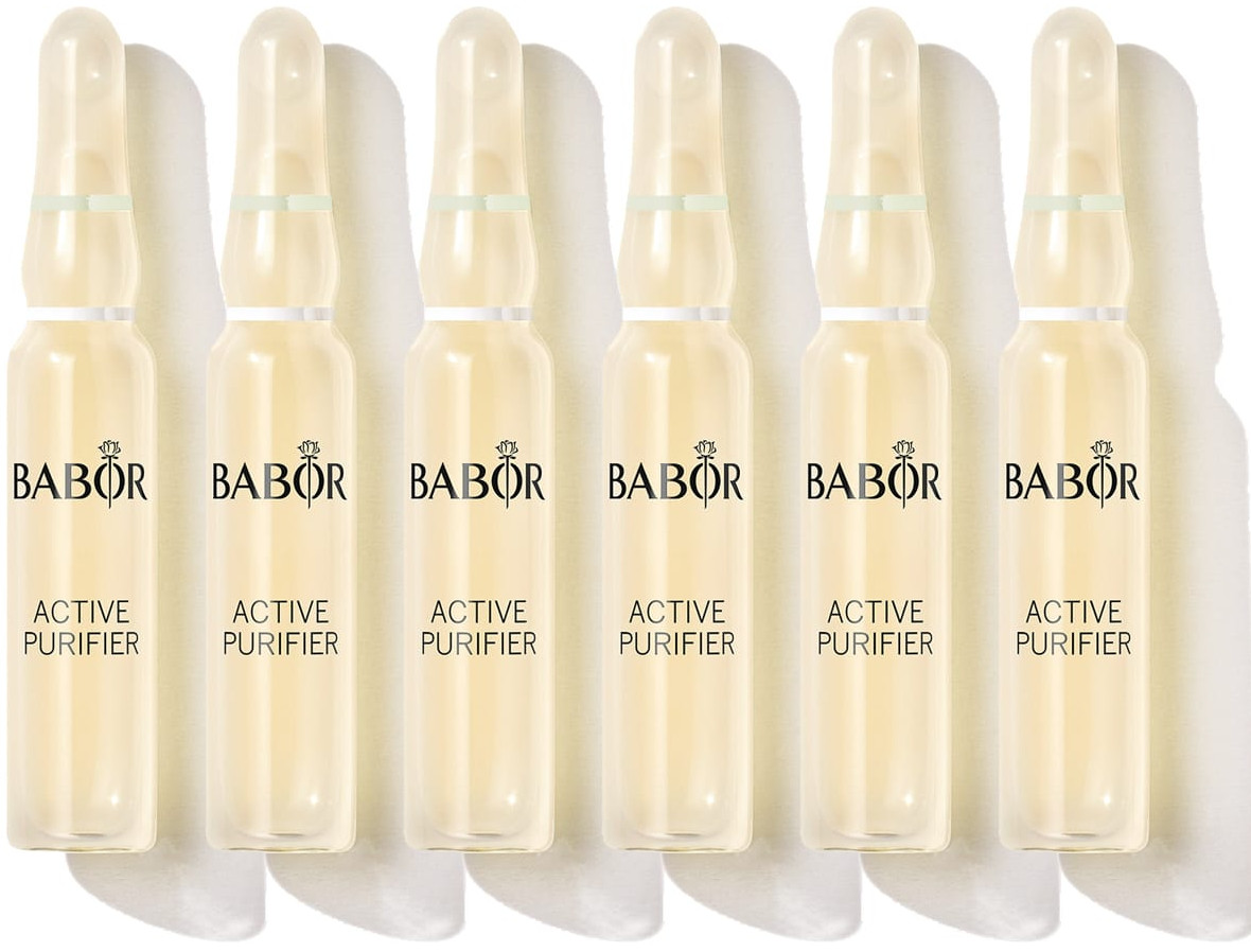 Babor Active Purifier Ampuller reduserer uren hud, tette porer og utbrudd raskt med ingredienser som tea tree-olje, som hemmer bakterier og fremmer hudreparasjon. Gir en klargjørende effekt på urenheter og sorte prikker, med synlig klarere hud på kort tid. Kan brukes i hele ansiktet eller lokalt. Ideell for ungdoms- og hormonell hud.
