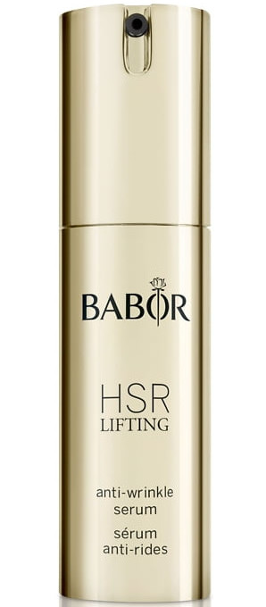 Babor HSR Lifting Serum er et høykonsentrert serum som er effektiv mot alle typer linjer og rynker, som sinnarynker, gravitasjonslinjer, tørrhetslinjer og nedsatt elastisitet i huden. Aktiverer oppbyggende kollagenfibre og bevarer hudens elastisitet, samtidig som den reduserer rynker gjennom redusert sakkarifisering av kollagenfibrene. Den er oppgradert med naturlig glykosid som bremser dannelsen av nye linjer og rynker, samt naturlige polysakkarider fra korsblomstfrø, som gir huden en oppstrammende effekt.