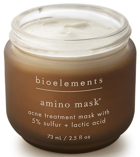 Bioelements Amino Mask er en svært effektiv maske for aknehud. Amino Mask inneholder blant annet svovel og salisylsyre som minimerer tetting av porer, dreper akne bakterier, kontrollerer overflødig olje, og roer ned betente akne / kviser. Amino Mask bør brukes etter behov eller 1-3 ganger i uken. Det er viktig å unngå øynene.
