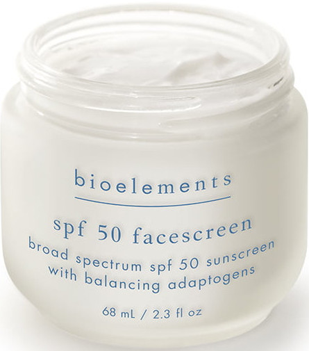 Bioelements SPF 50 FaceScreen er en bredspektret fuktighetskrem som beskytter huden din usendvanlig godt mot farlige stråler fra solen. SPF 50 FaceScreen gir en bredspektret beskyttelse av UVA- og UVB stråler og hindrer risikoen for tidlig aldring av huden. SPF 50 FaceScreen leverer Bioelements sitt høyeste nivå av aldringshindrende, bredspektret UVA- og UVB-solbeskyttelse. I større grad enn en vanlig solkrem med bredt spekter, reduserer denne avanserte SPF-formulaen risikoen for tidlig aldring av huden, da den forbedrer utseendet på linjer, rynker og følelsen av fasthet. I tillegg er denne kremen fullpakket med adaptogene kinesiske urter for å balansere og styrke huden.