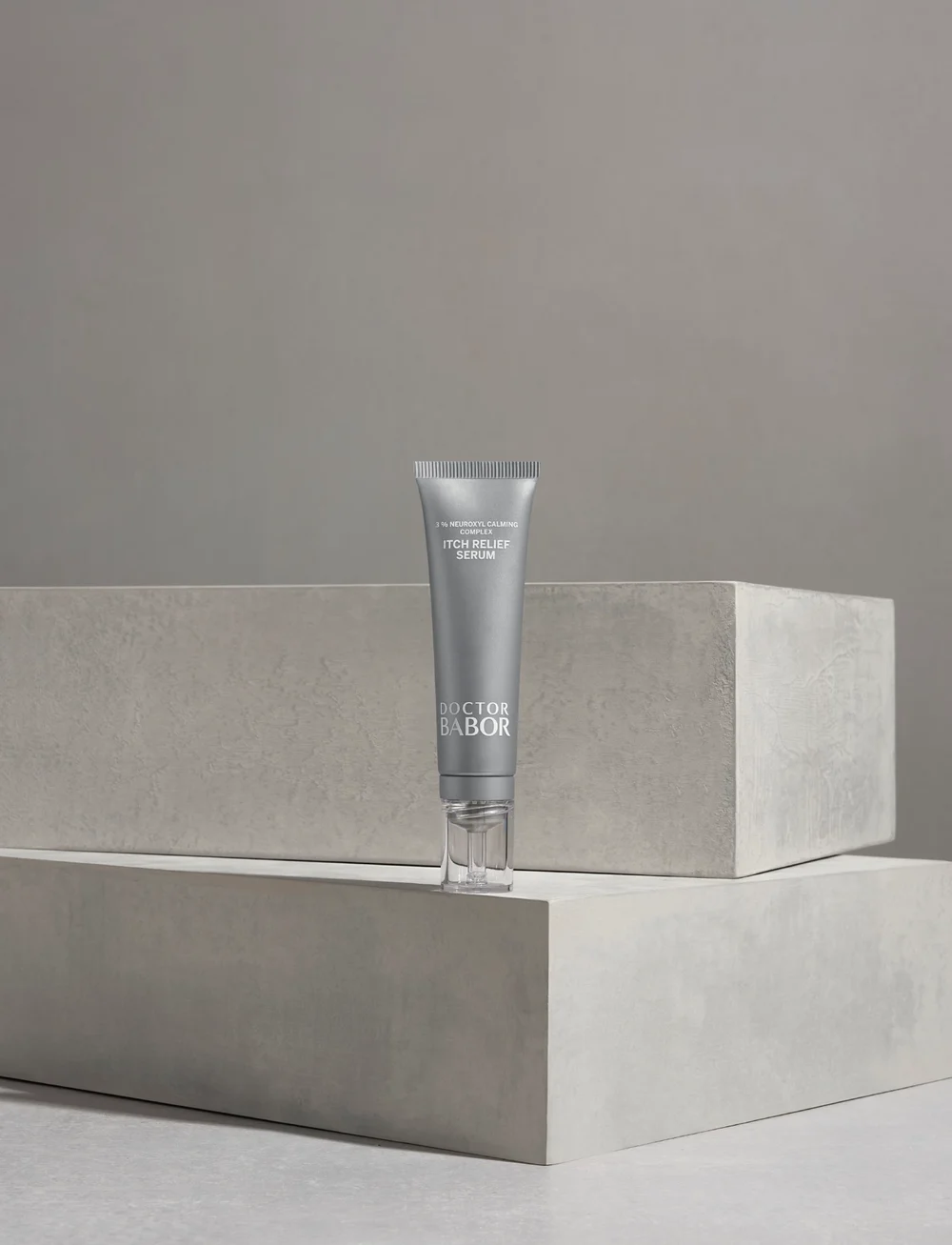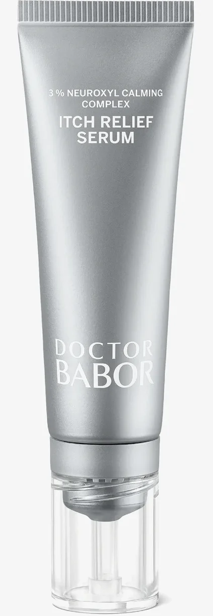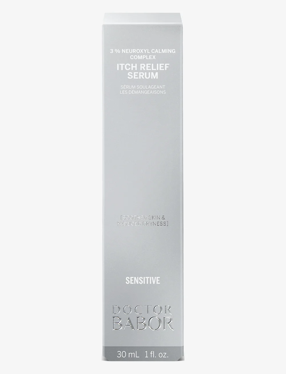 Doctor Babor Itch Relief Serum – ingredienskomplekset av 3% neuroxyl, nattlysolje og mikrosølv bidrar til å gi lindring til en tørr og lipidfattig hud. Hudens naturlige beskyttende barriere med økt fukt bedres med panthenol, allantoin og glyserin. Denne kombinasjonen gir en avslappet hud som føles mer balansert.