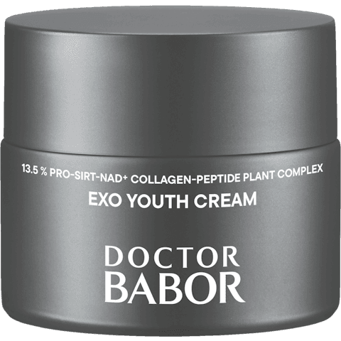 Doctor Babor PRO Exo Youth Cream er en effektiv anti-age krem som inneholder et 13,5 % PRO-SIRT-NAD kollagen-peptid plantekompleks. Formelen er utviklet for å gi huden et glattere og fastere utseende, samtidig som den reduserer synligheten av aldringstegn og støtter hudens naturlige vitalitet.Hjelper med å redusere synligheten av fine linjer og andre tegn på hudens aldring.