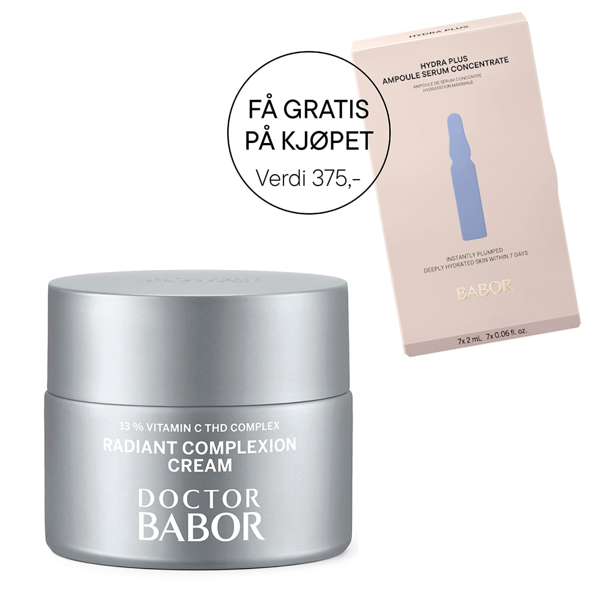 Doctor Babor Radiant Complexion Cream er en stabil THD som forbedrer hudens utseende, mens antioksidantkomplekset av astaxanthin, glutathion og vitamin E bidrar til å støtte hudens eksisterende naturlige forsvar mot frie radikaler og de første tegnene på hudaldring forårsaket av miljøfaktorer.