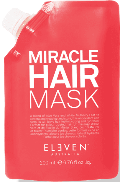 Eleven Australia Miracle Hair Mask er en blanding av Aloe Vera og White Mulberry Leaf for å gjenopprette og behandle tapt fuktighet, denne antioksidantrike formelen vil etterlate håret sterkt og hydrert.