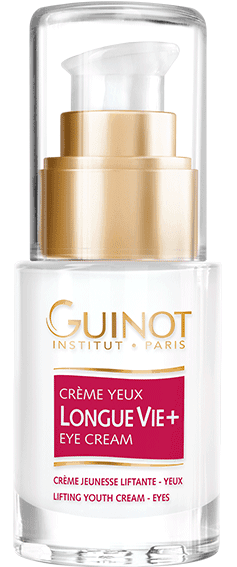 Guinot Longue Vie+ Yeux Creme er fornyet og forbedret utgave av Longue Vie Yeux Creme og har nå ytterligere foryngende effekt innen anti-rynke, oppstramming, glød og cellefornyelse. Longue Vie Creme ble utviklet i 1986 basert på eksepsjonell forskning av et kompleks bestående av 56 cellulære ingredienser som fremmet hudfornyelse. Komplekset ble utviklet i samarbeid med biologisk avdeling ved Cochin Hospital, og ble brukt på brannskadede pasienter p.g.a. sin eksepsjonelle cellefornyende effekt for å gjenskape ny hud.