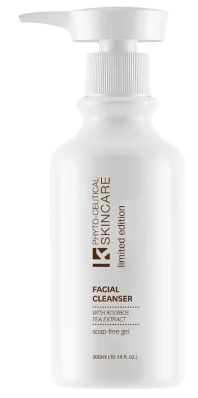 K Phyto-Ceutical Facial Cleanser 300 ml Limited Edition er en nydelig såpefri, gelébasert ansiktsrens, rik på botaniske ekstrakter som beroligende Rooibos-te og oppstrammende, lysnende og betennelsesdempende Kigelia Africana. Den milde skummende rensen fjerner effektivt urenheter og forurensning, og etterlater huden ren og oppfrisket.
