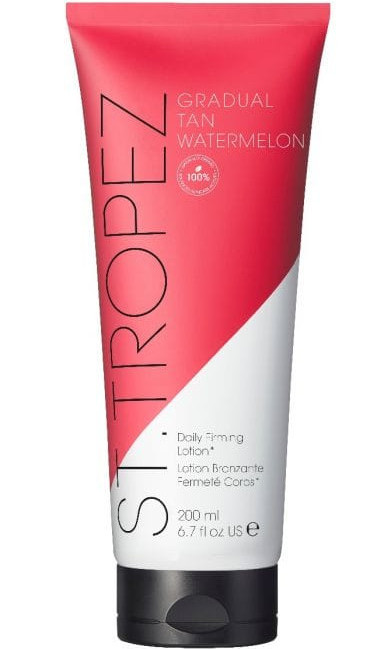 St. Tropez Gradual Tan Watermelon Daily Firming Lotion er en lett, daglig selvbruning lotion som gradvis bygger opp en naturlig, medium solbrun tone. Den fukter, strammer opp og beskytter huden med ingredienser som hyaluronsyre, havalger og antioksidantrike bærfrøekstrakter.