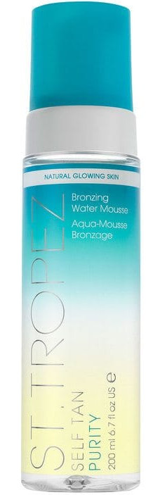 St. Tropez Self Tan Purity Bronzing Water Mousse er et klart, forfriskende og lett selvbrunings- skum som gir gyllen til medium glød på 4–8 timer. Formula som gir fukt og pleie, uten at det blir skjolder eller smitter av. Med deilige dufter av tropiske blomster og frukter.