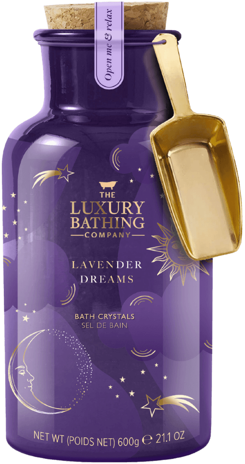 The Luxury Bathing Company Bathtime Bliss Lavender er en innbydende kolleksjon av produkter med den essensielle oljen lavendel, kjent for å berolige sansene og skape en rolig og behagelig atmosfære.