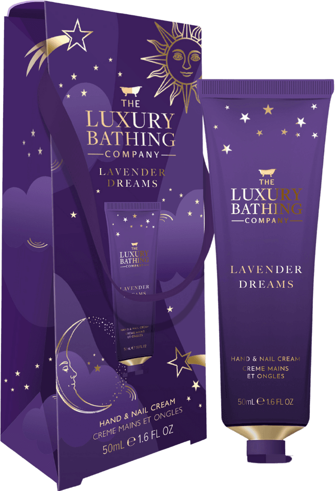 The Luxury Bathing Company Deluxe Hand Cream Lavender er en innbydende kolleksjon av produkter med den essensielle oljen lavendel, kjent for å berolige sansene og skape en rolig og behagelig atmosfære.